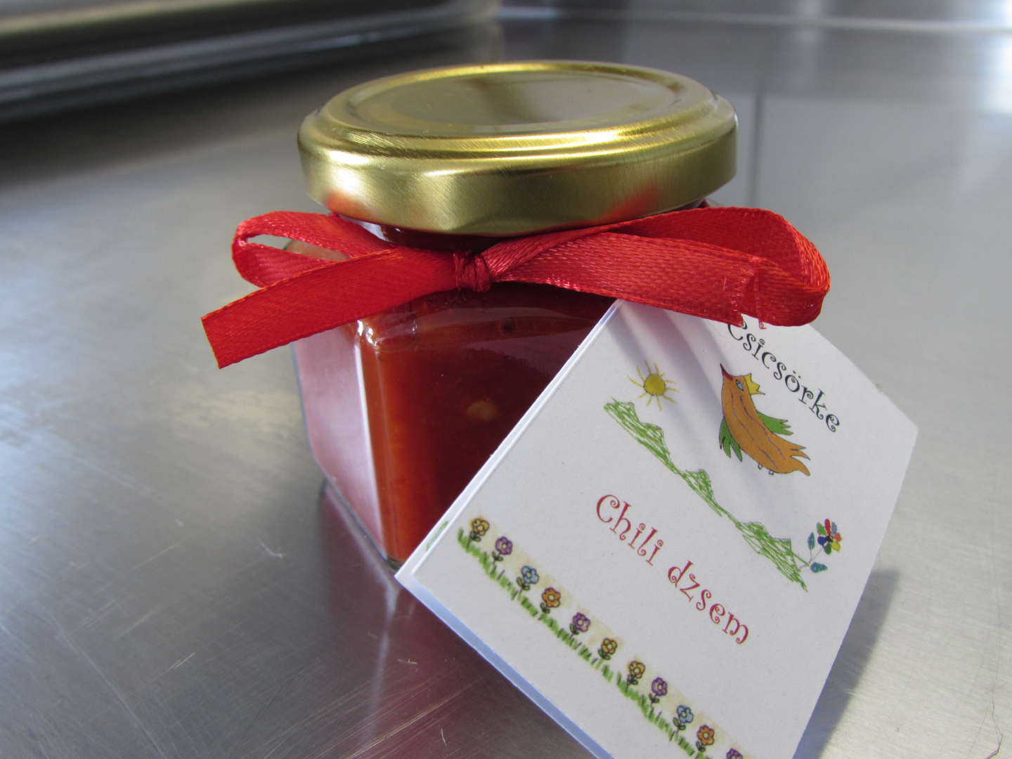 CHILI DZSEM 100g-os kiszerelésben Tartósítószer mentes. Hőkezeléssel tartósítunk. Chili paprika, almával enyhítve a csípősséget, magok nélkül. Ajánljuk lágy sajtokhoz, sültekhez, ételek ízesítéséhez.