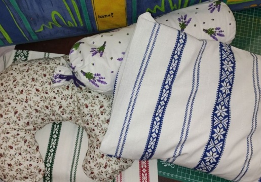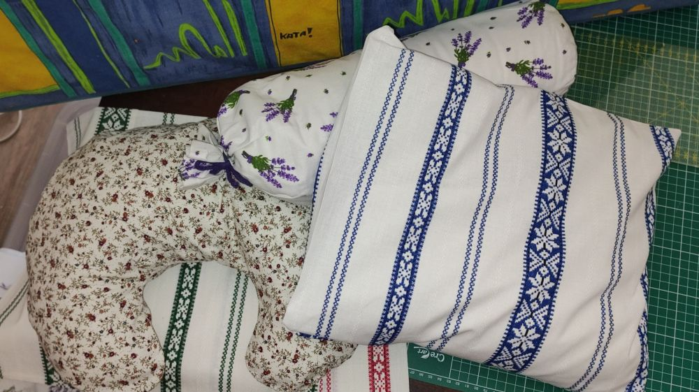 A párnák a búza hantolásakor keletkező tisztított pelyvával vannak feltöltve.