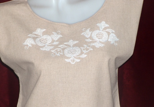 A gömöri térség egyik legrégibb, már-már feledésbe menő hímzéstechnikája a Gömöri csomóshímzés, ami az úrihímzés mintakincsét használja fel, de nem a hagyományos sima, lapos öltésekkel tölti ki a teret, hanem apró csomókkal, amelyek optikailag apró felfűzött vagy egymás mellé rakosgatott gyöngysorokká állnak össze. Világos anyagon fehér fonállal készül a kézimunka, ami nagyon igényes, pontos kivitelezést igényel. Mi ezt a régi, de nagyon értékes hímzéstechnikát szeretnénk életben tartani, és megismertetni a szélesebb közönséggel. A díszítő motívumokat a mai kor ruháin is elhelyeztük, és termékekből kiállítást is rendeztünk.