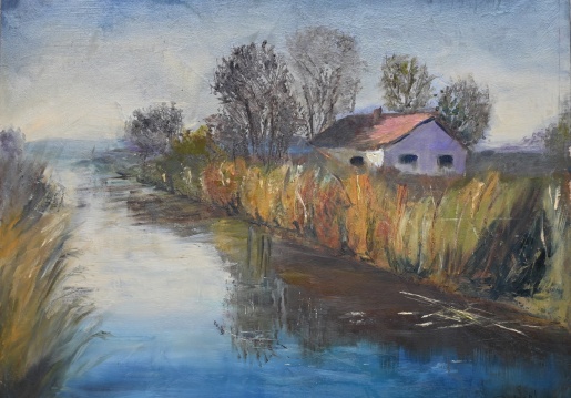 Előszeretettel örökítem meg a Fertő kultúrtáj egyes elemeit, részleteit, természet és ember harmonikus egységének lenyomatait. A természetet, a tájat megérteni csak alapos megfigyelés után lehetséges - közel áll hozzám a "plein air", azaz a szabadban történő festészet. Így készült a Hansági-főcsatornát megörökítő festmény is, amely fontos dokumentáció lehet a jelenlegi tájról az utókor számára.