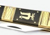 Bajonett szárral. Különálló késre és villára bontható eszköz. A nyele berakásokkal, vésésekkel, bereszelésekkel díszített.