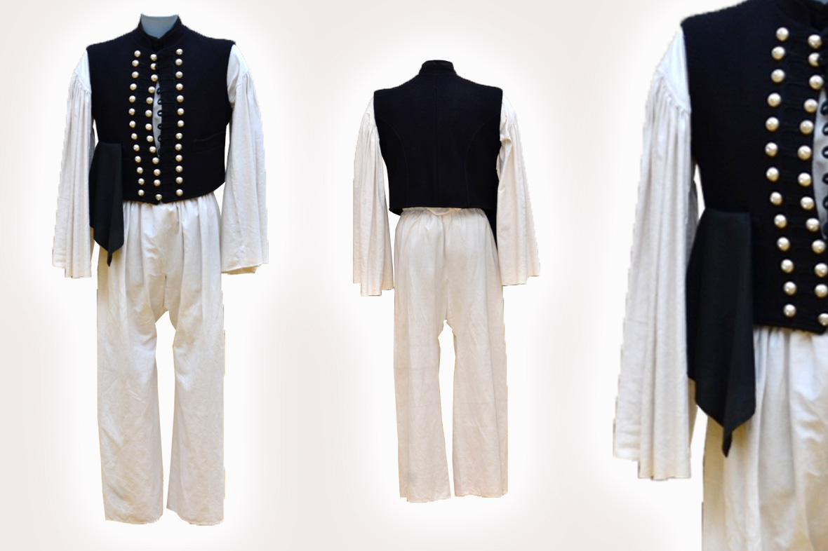 Kiválóan alapanyagból készült mind a vászonruha, mind a mellény. A vászonruha összeállításánál hűen követi a tradicionális előzményeket. A posztó alapú mellény zsinórdíszítménye és ékszergombja különleges dekorativitást ad a viseletnek. Szépen megmunkált, jól használható öltözék napjainkban is.
