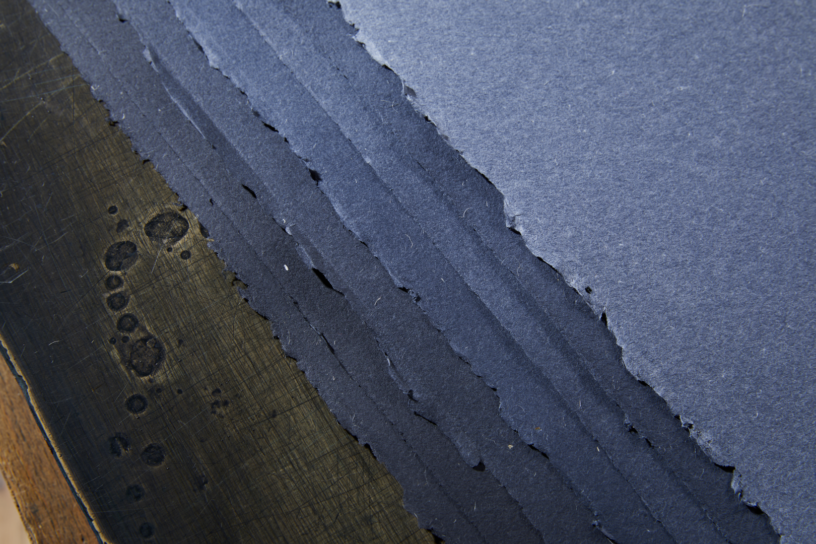 Kék farmer papír: Alapanyag a pamutból készült farmernadrág. Színét a felhasznált farmer kék árnyalata adja. 100%-ban újrahasznosított.
