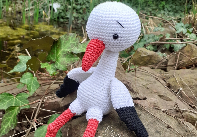 A nagy fehér gólya egy 23 cm magas, kézzel horgolt figura.