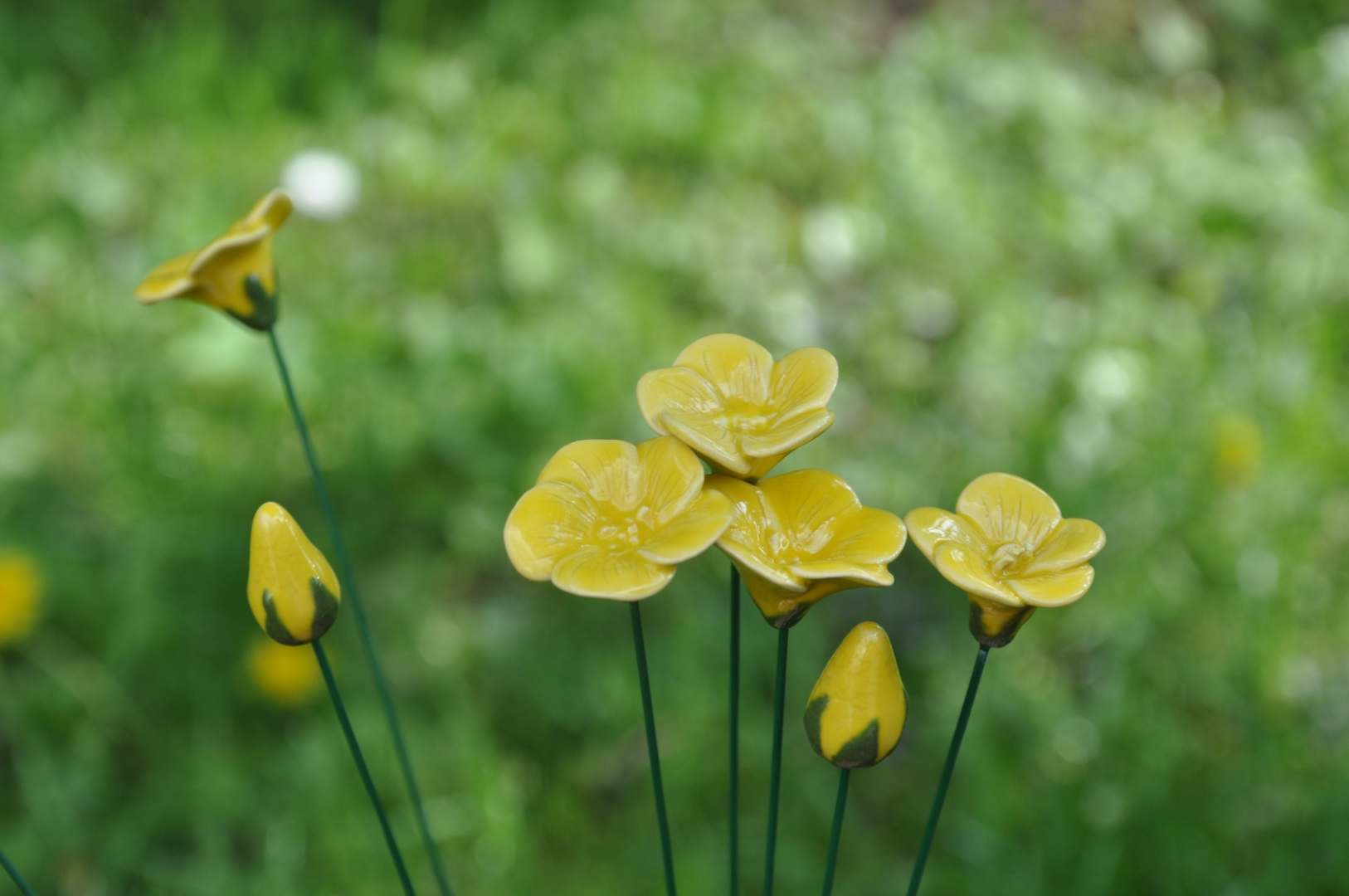 Pilisi len virág és bimbó kerámiából. Ezt a gyönyörű kerámia virágot egy olyan törékeny kis növény ihlette, amely csak a fokozottan védett Szénások Európa Diplomás Területen él. Drótszálon és ékszerként (fülbevaló, nyaklánc) is kapható, virágcsokorba, koszorúba is illeszthető.