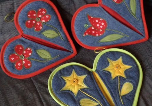 - farmer újrahasznosításával készült, népi motívumokkal díszített edényfogók, táskák
