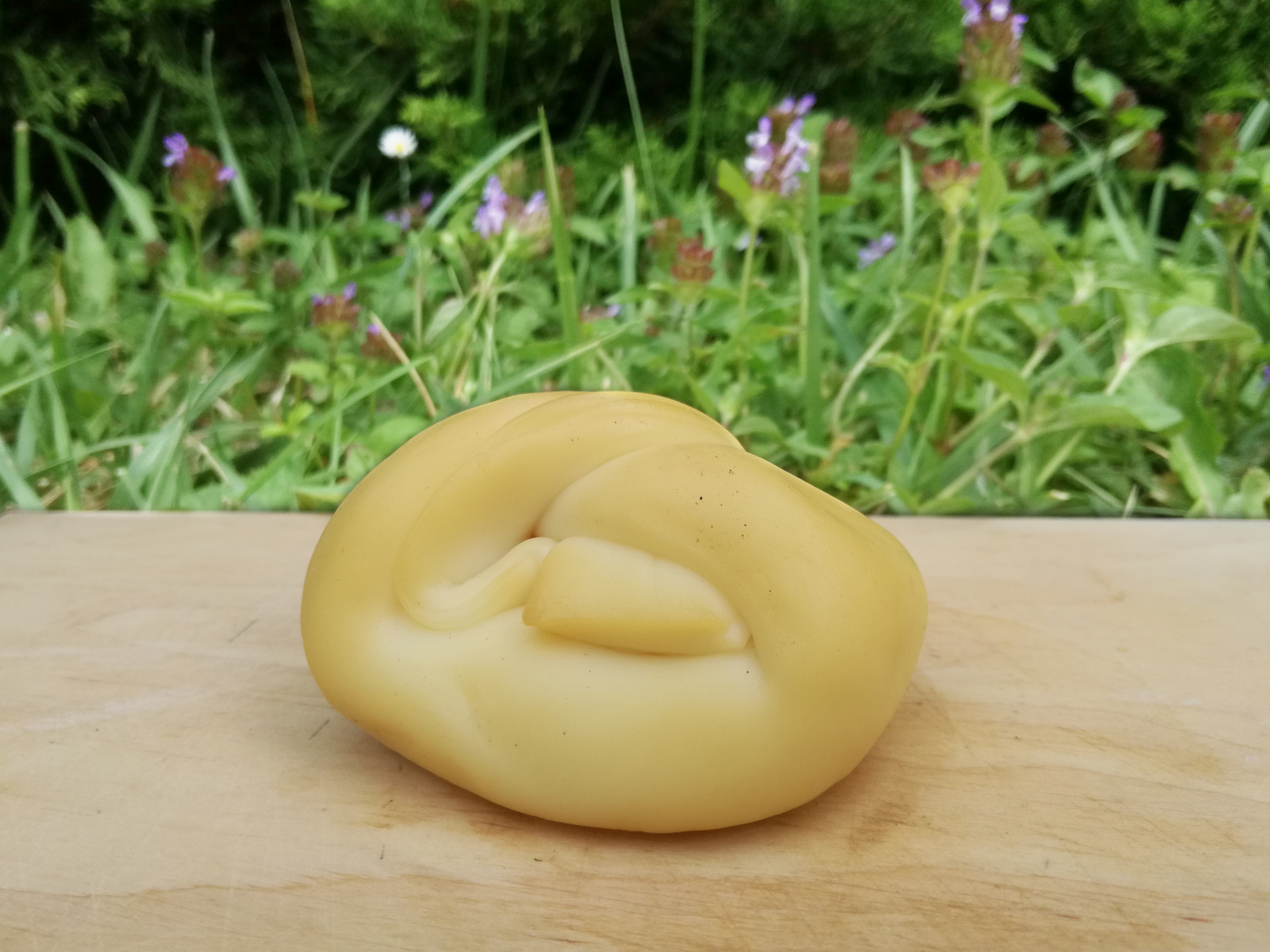 Alapja a friss csomós sajt, mely enyhe füstös kérget kapott. A gyúrt sajt alapötletét a Hódmezővásárhelyen hagyományos paraszti ételnek számító túrós táskaleves adta. Ennek alapján lett a sajt borssal ízesített túróval töltve, formája pedig a hagyományos táskáéhoz hasonló.