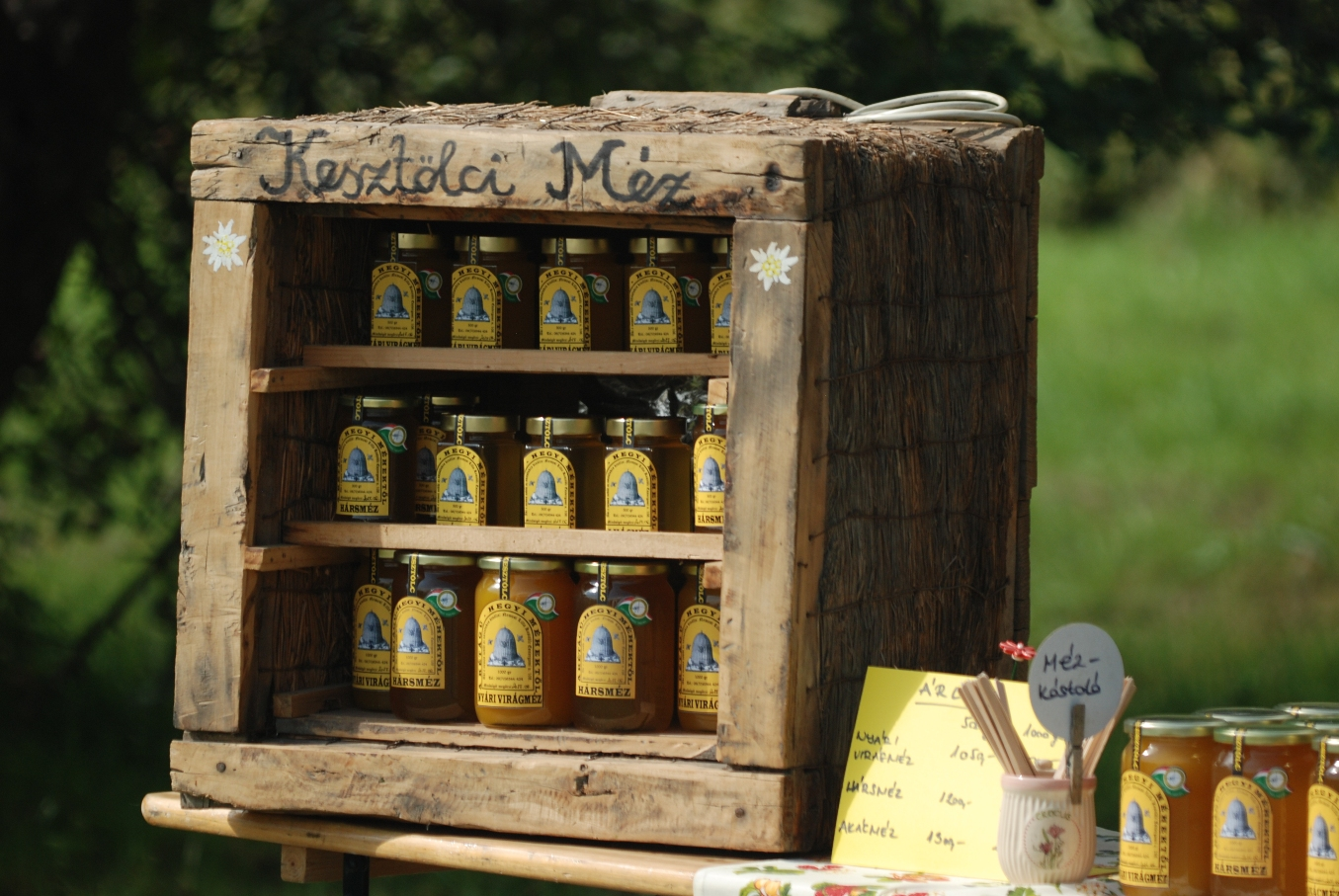 Sziklagyepi virágméz: június-júliusban készítik a méhek. Réti virágok, zsálya, kamilla, somkóró, selyemkóró, kakukkfű virága, valamint a kaptárak elé telepített levendula szolgáltatja a sokrétű ízvilágot.