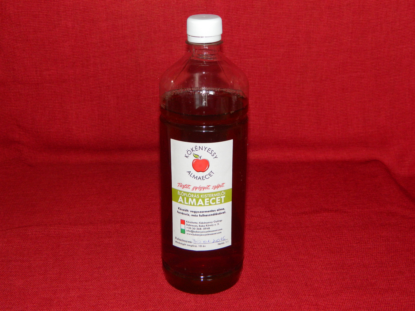 A fákról lehullott érett almát összeszedem, lemosom, és 2-3 felé darabolom, hogy a házilag készült fésűs darálóban ne forogjon egymáson. Az almapép hordóba kerül. 4 dcl almapéphez 0,5l forrásvíz, és 1 l vízhez 5 dkg cukor kerül. Ez az időjárástól függően 5-10 nap alatt elmálik, napi 5-7 kevergetés közben. Ezután szúnyoghálón keresztül kipréselem. Az így nyert levet egy 1000 literes tartályban összegyűjtöm, és mézzel egy képlet alapján beállítom az ecet kívánt erősségét. Pincébe hordókba, tartályokba kerül, és ruhával letakarva 16 C fokon érik. Az igazi ecetnek 8, azaz nyolc évre lenne szüksége. A jelenlegi forgalmazott ecetem másfél éves. Az ecetvirág mindig visszakerül az új alma léhez, ezzel biztosítva az élőflórát és az eredeti, egyedi ízt.