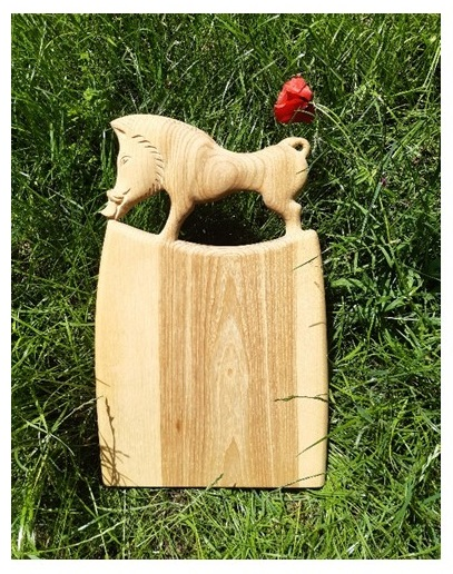 Kőrisfa faragott vágódeszkák és a Magyar puszta állatvilága fajáték figurák