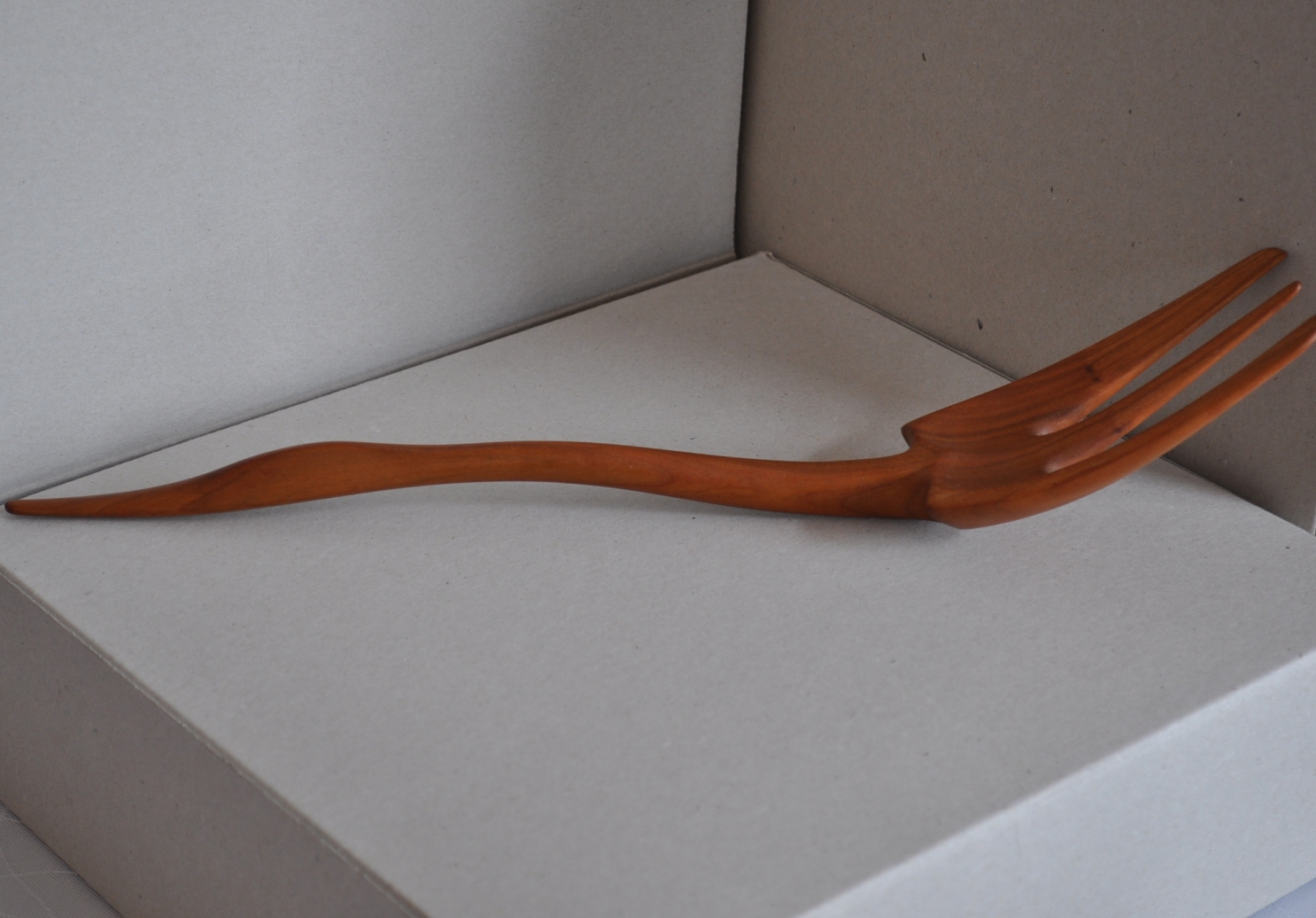 Szépen kidolgozott, cseresznyefából faragott villa, melynek nyele egy madárra hasonlít. Dísztárgyként éppúgy megállja helyét bármelyik háztartásban, mint használati eszközként.