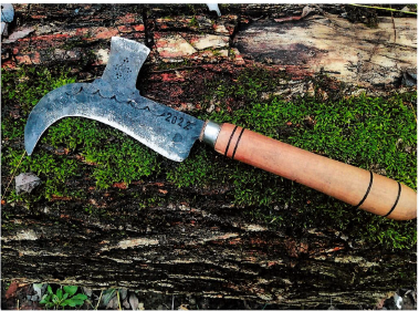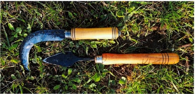 A szerszám nyelét maga esztergálja küolönböző helyi faanyagokból pl.: dió, szil, eperfa, akác, galagonya.