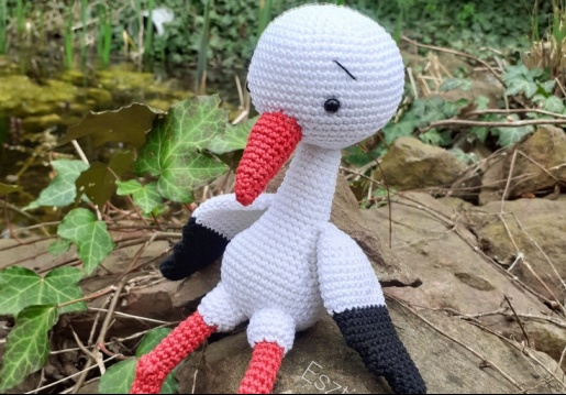 A nagy fehér gólya egy 23 cm magas, kézzel horgolt figura.