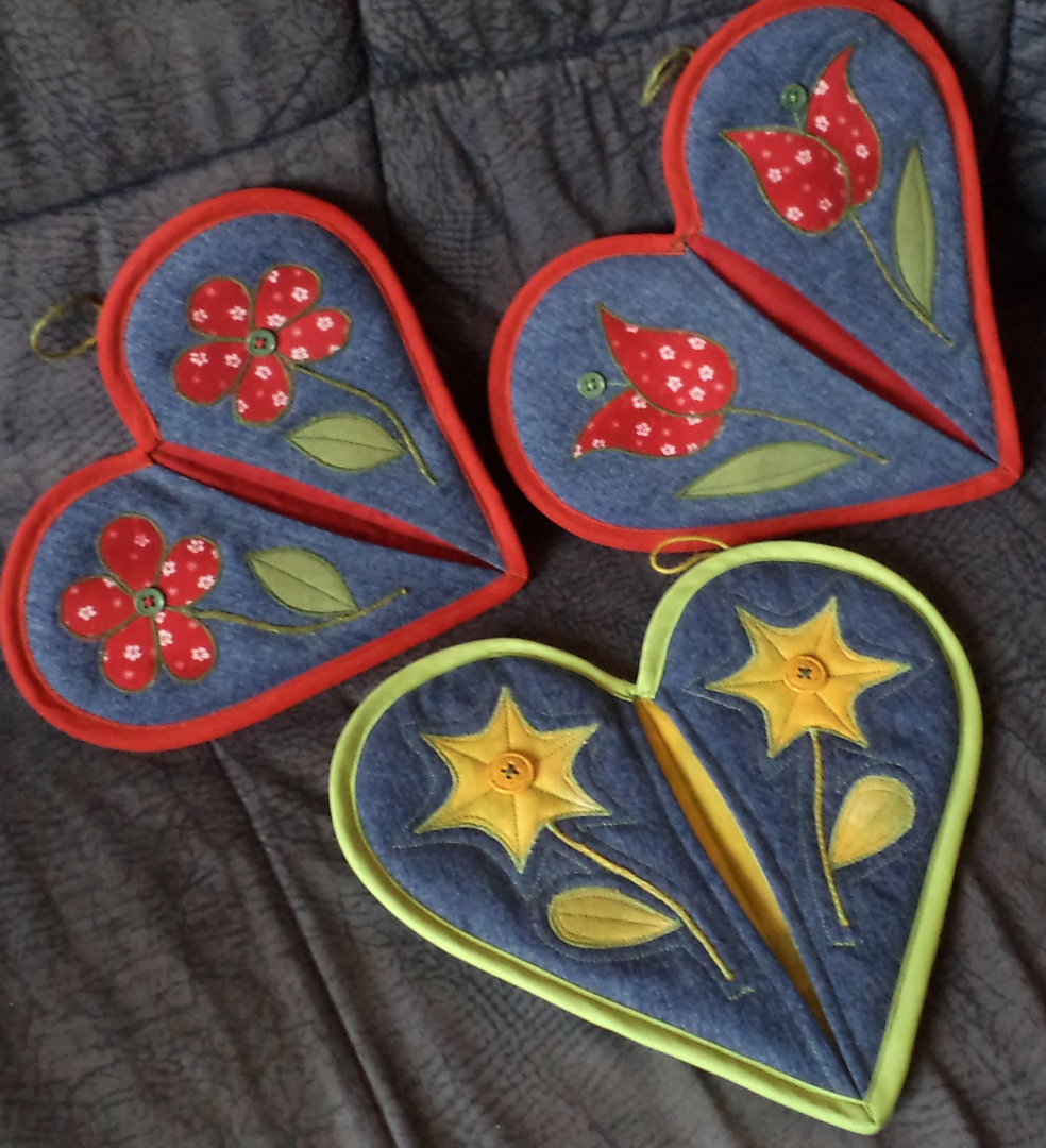 - farmer újrahasznosításával készült, népi motívumokkal díszített edényfogók, táskák