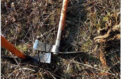 A szőlőcsákány a szőlőmunkásoknál betöltött hasznáról kapta régen a nevét. Ez a kovácsolt kétélű eszköz nagyon jó szolgálatot tesz különböző gyökerek, tuskók eltávolításánál. Akácsak elpusztúlt fa csonkja vagy természetvédelmi célú cserjevisszaszorítás esetén nagyon hatékony vele a munka. Mindkét kovácsolt éle éles, a nyele bükkfa és a különleges ráhúzós rögzítése miatt kizárt, hogy leessen a feje a nyeléről (hasonlóan a csákányhoz).